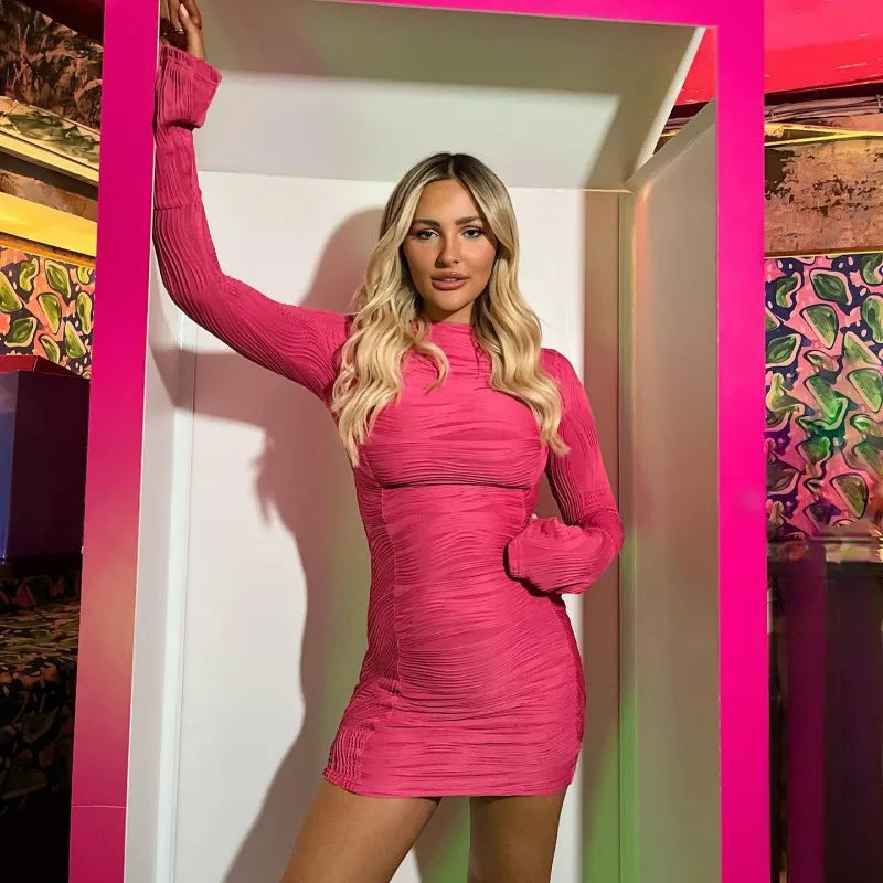 Wholesale Women's Elegant Simple Style Streetwear Pleated Solid Color Casual Selfie Round Neck Long Sleeve One-Step Skirt