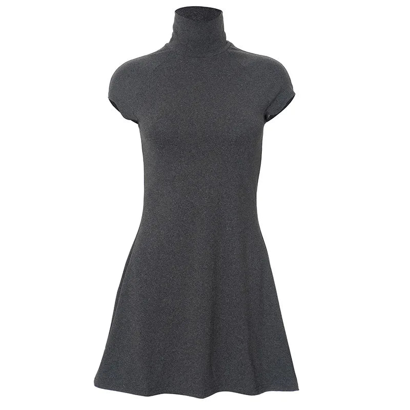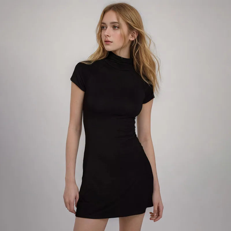 Wholesale Women's Elegant Streetwear Solid Color Casual Selfie High Neck Short Sleeve A- Line Skirt