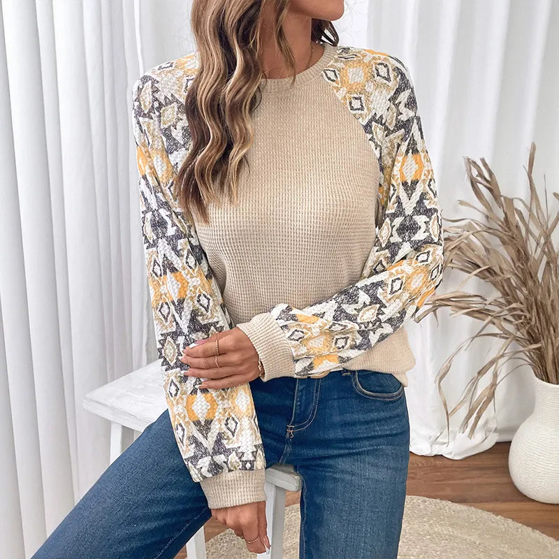 Wholesale Women's Spandex Polyester Casual Simple Style Printing Long Sleeve Khaki T-shirts