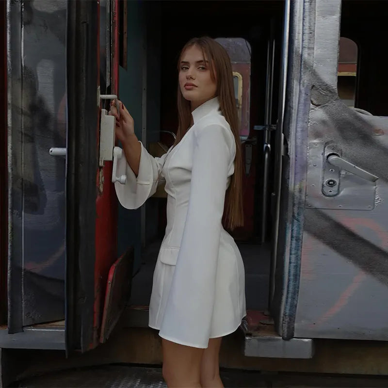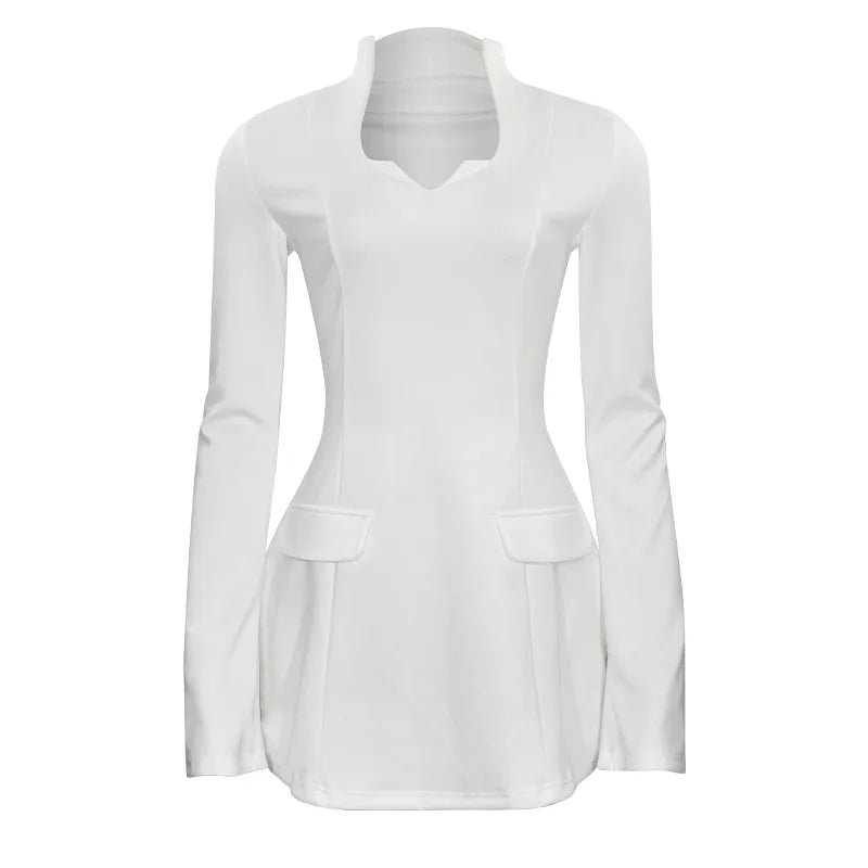 Wholesale Women's Streetwear Solid Color Casual V Neck Long Sleeve A- Line Skirt