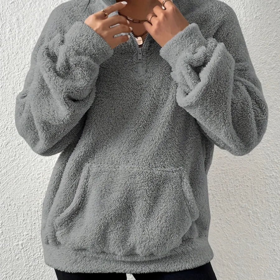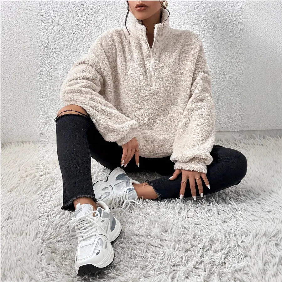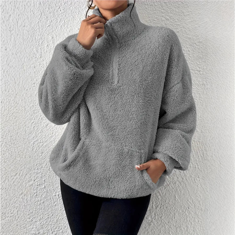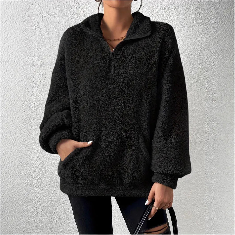 Wish Autumn Winter Plush Fleece Lined Stand Collar Hoodie Women's Casual Top Street Style Loose Fit Long Sleeve Sweatshirt