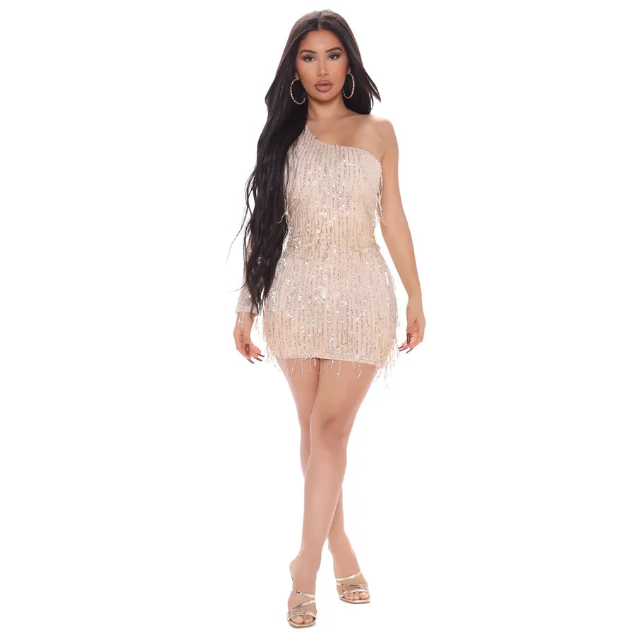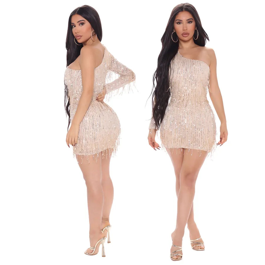 women's black dress sexy off shoulder sequins long sleeve solid color above knee