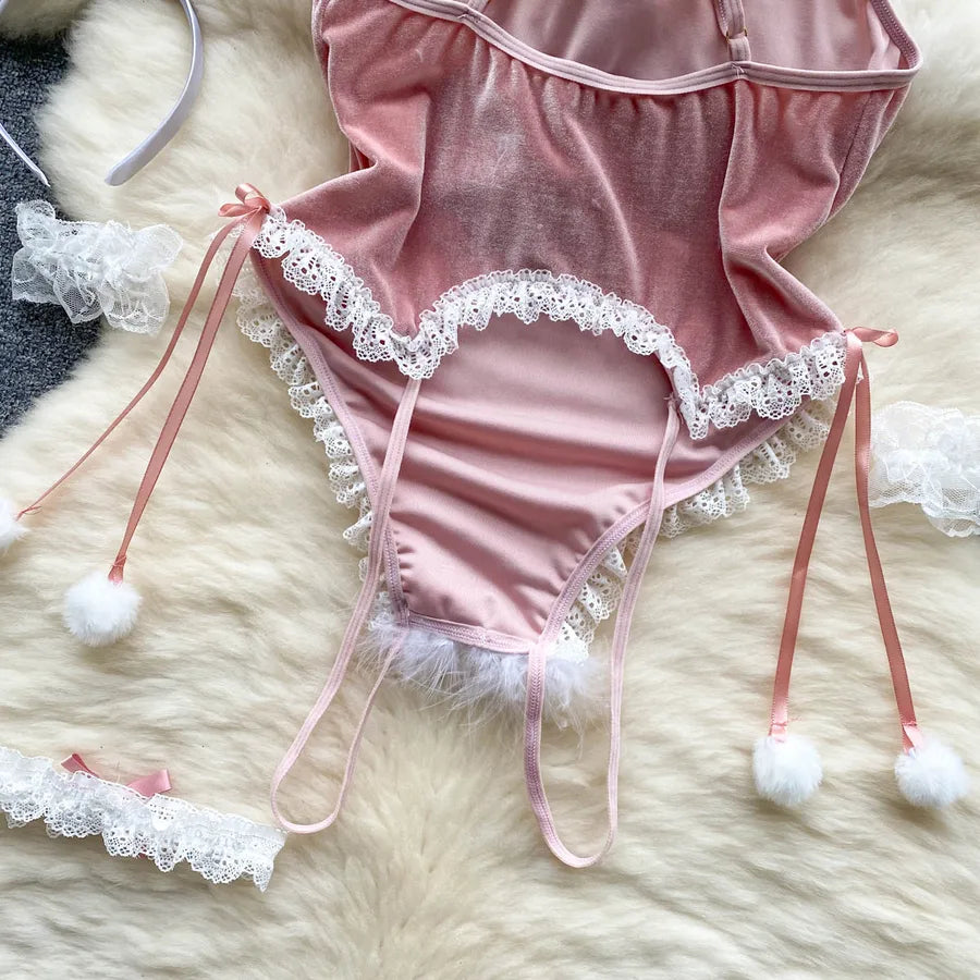 Women's Christmas Sexy Color Block Sexy Lingerie Sets Party Jumpsuit Mid Waist Briefs Sexy Lingerie