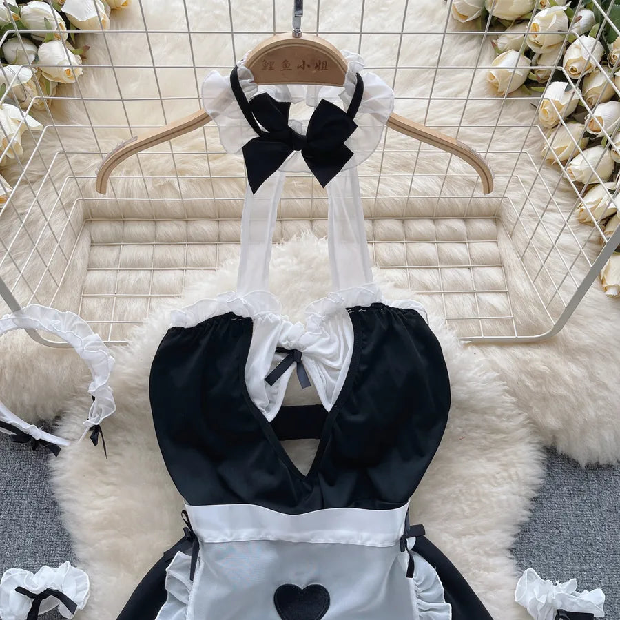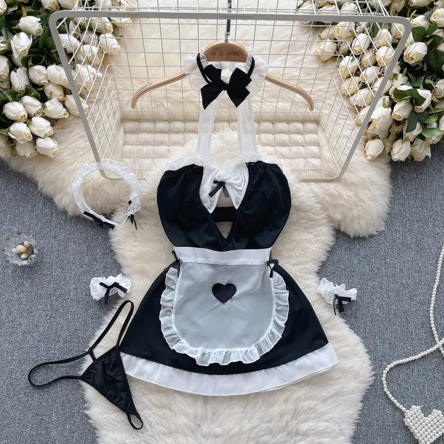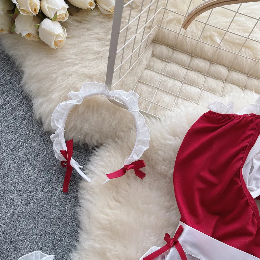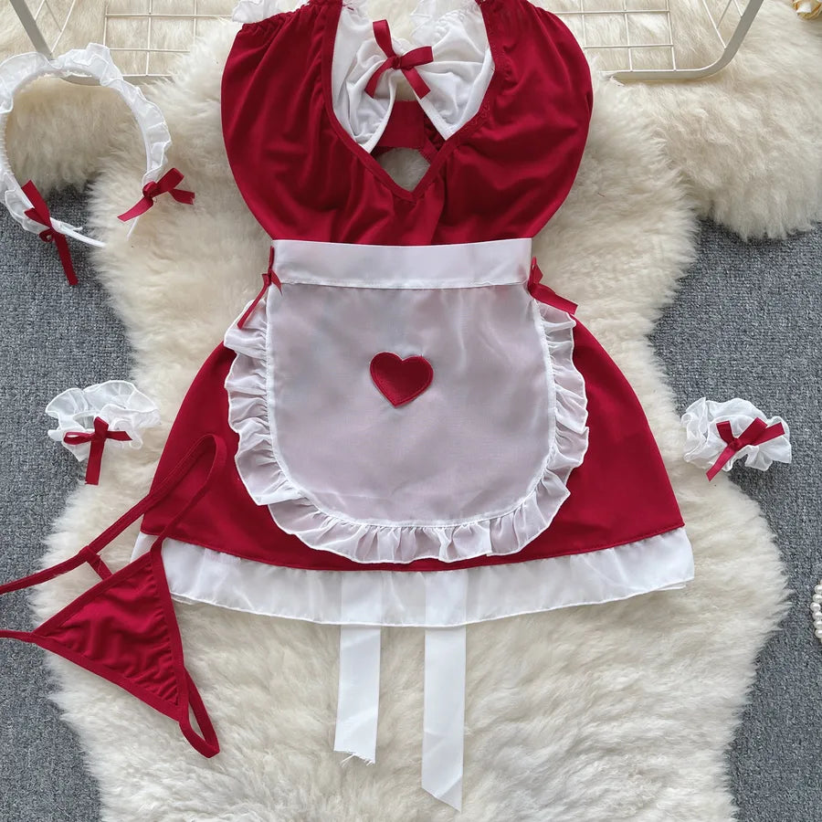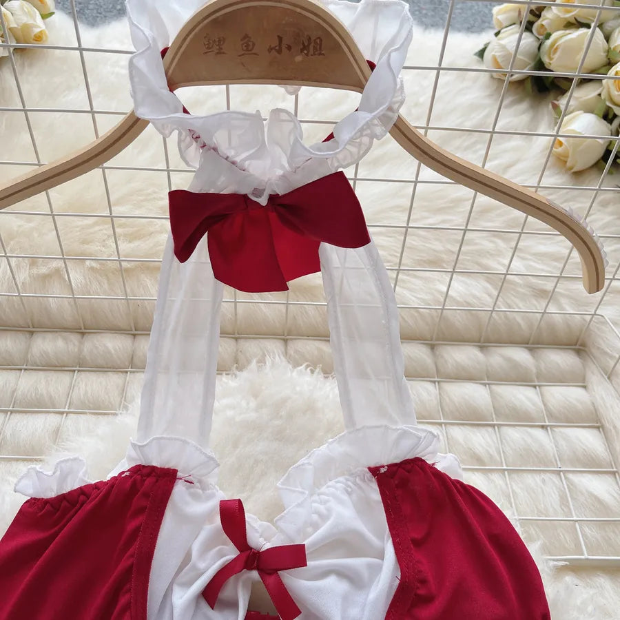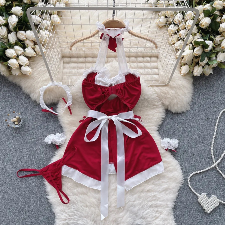 Women's Christmas Sexy Heart Shape Bow Knot Sexy Lingerie Sets Party Hanging Neck Type Low Waist Thong Sexy Lingerie