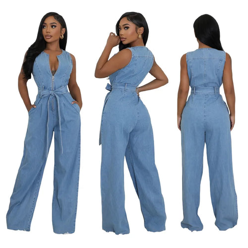 Women's Daily Bodysuits Casual Solid Color Full Length Belt Jumpsuits