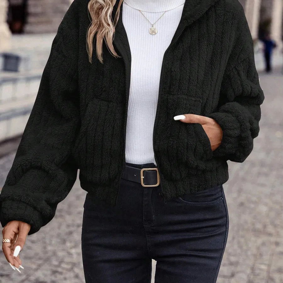 Women's Double-Sided Fleece Zipper Hooded Open Cardigan Loose Top Coat Autumn Winter New Style Style