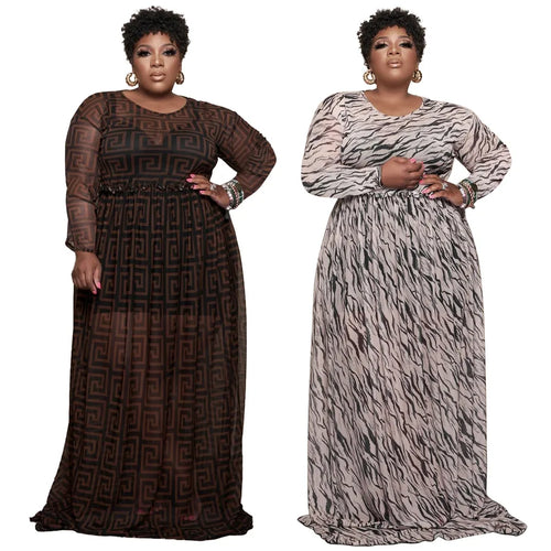 Women's Fashion High Elasticity Sheer Printed Sexy Mesh Plus Size Dress Nightclub Dress