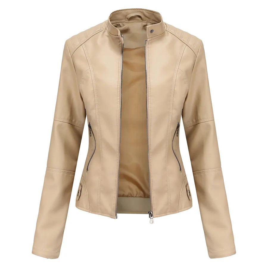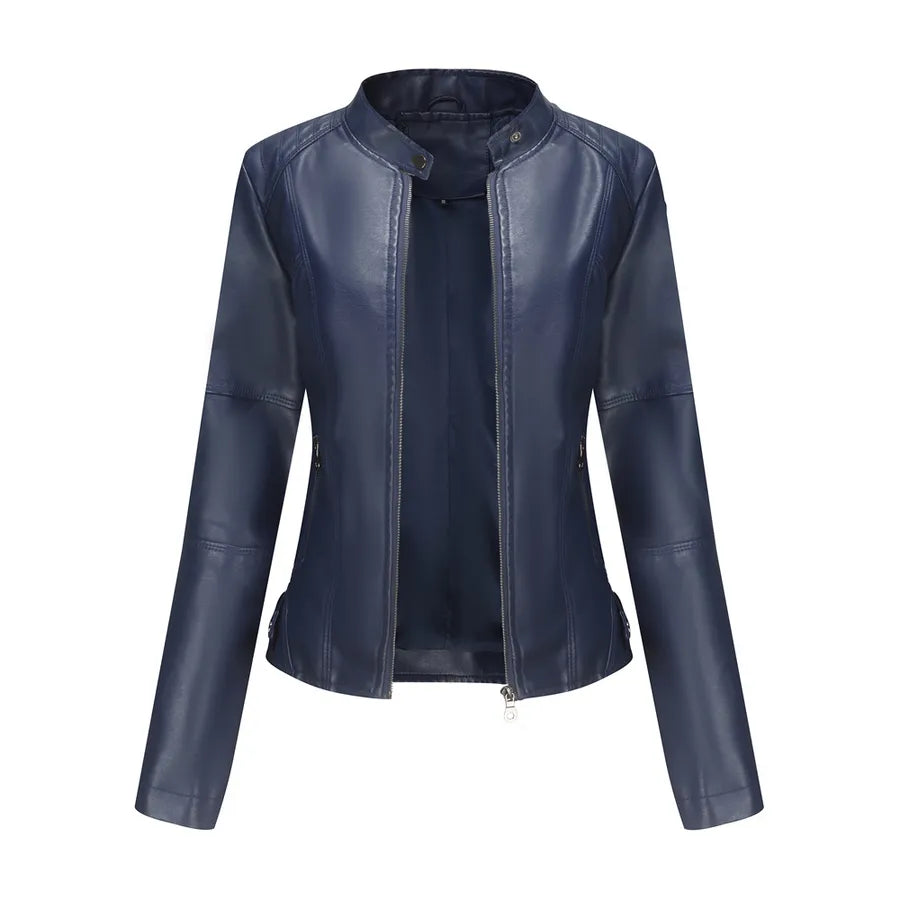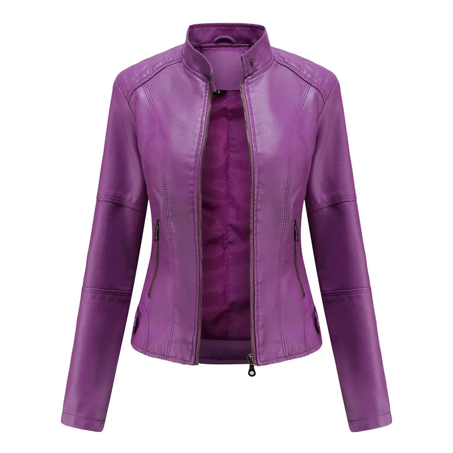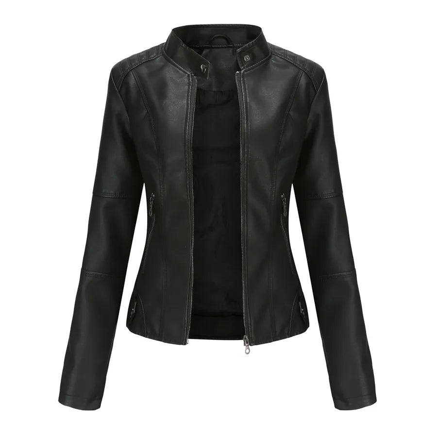 Women'S Fashion Solid Color Zipper Leather Jacket Jacket