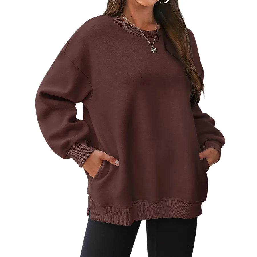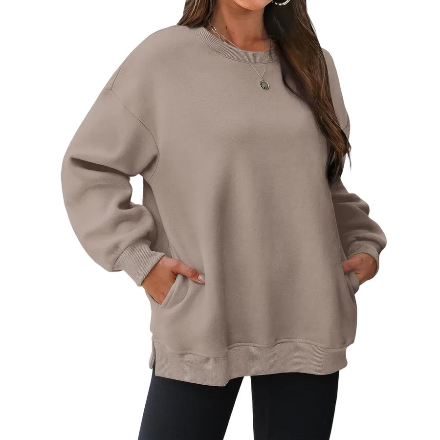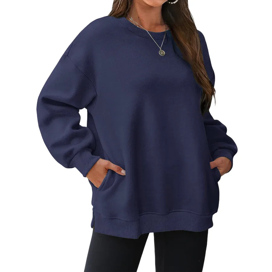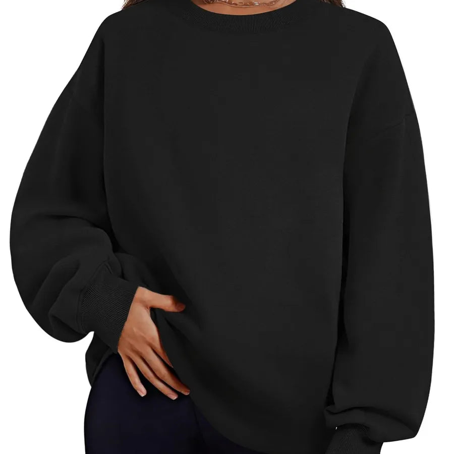 Women's Fleece Lined Thick Long Sleeve Hoodie Loose Top Autumn Winter New Style Comfortable Polyester Round Neck Sweatshirt