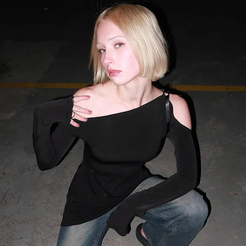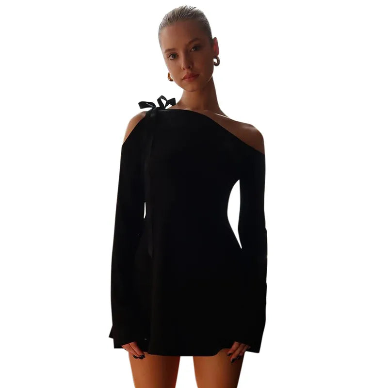 Women's Hip skirt Sweet Spicy Wind Oblique collar Long Sleeve Solid Color Above Knee Daily