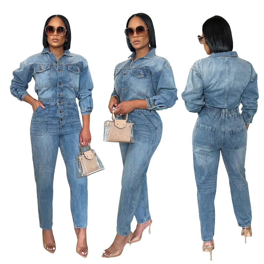 Women's Holiday Streetwear Printing Full Length Pocket Jumpsuits