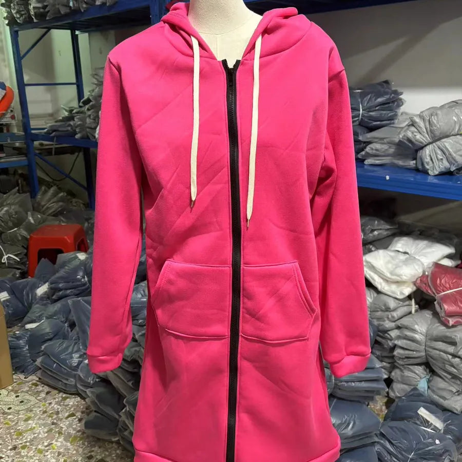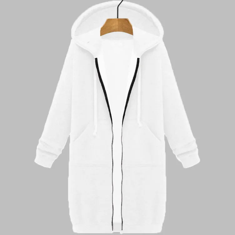 Women's Hooded Mid-Length Long Sleeve Sweatshirt Autumn Winter Fashion Casual Style Polyester Fabric Comfortable Fit Sweater