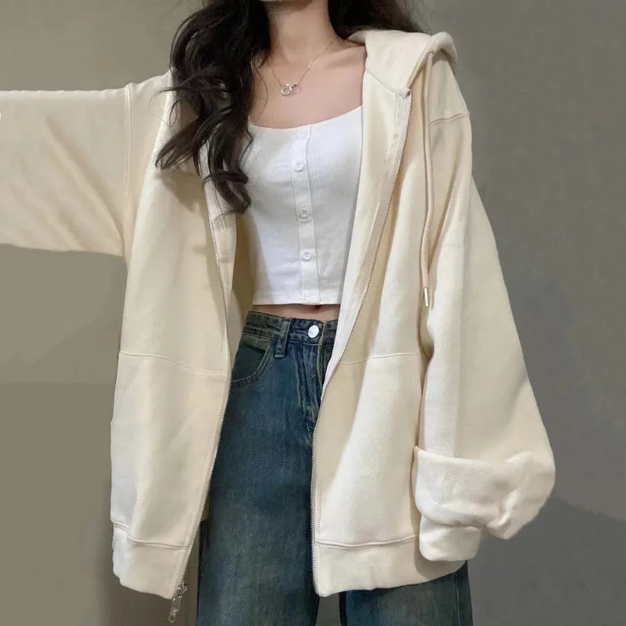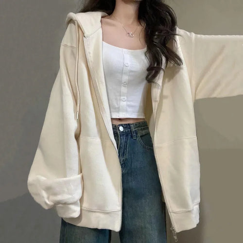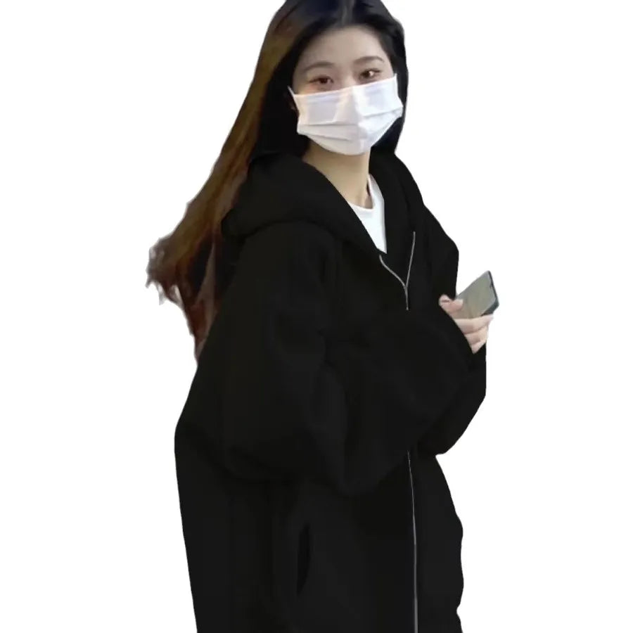 Women's Hooded Zipper Cardigan Sweatshirt Casual Loose Slimming Lazy Style Outerwear Spring Autumn New New Version
