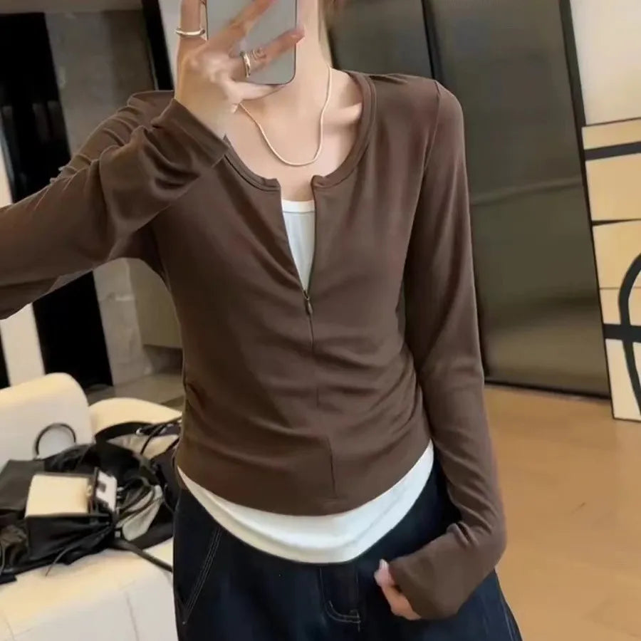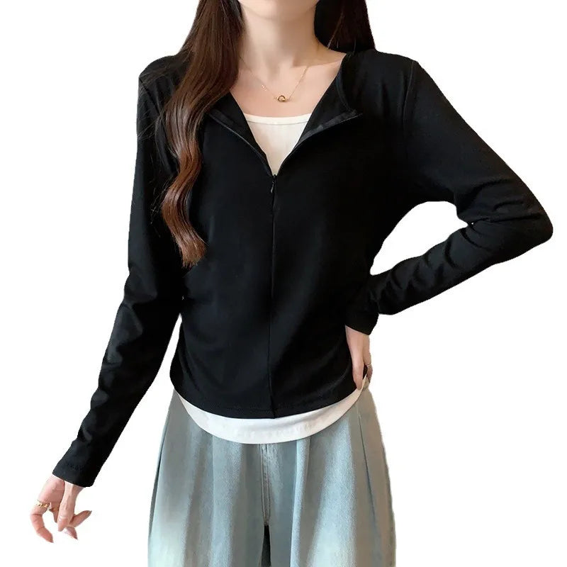 Women's Long Sleeve Base Shirt Half Zipper Mock Neck Inner Wear Autumn Winter T-Shirt Slim Fit Commute Style Color Block Collar