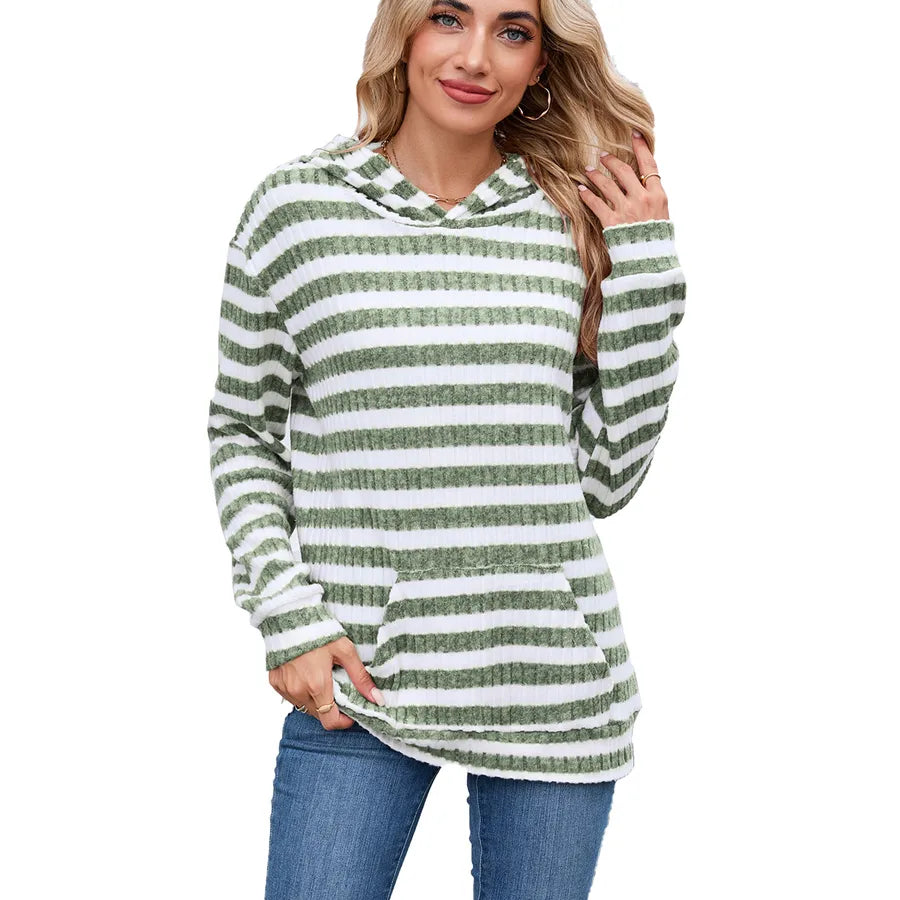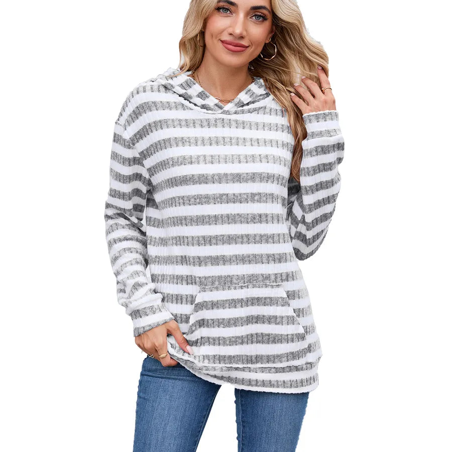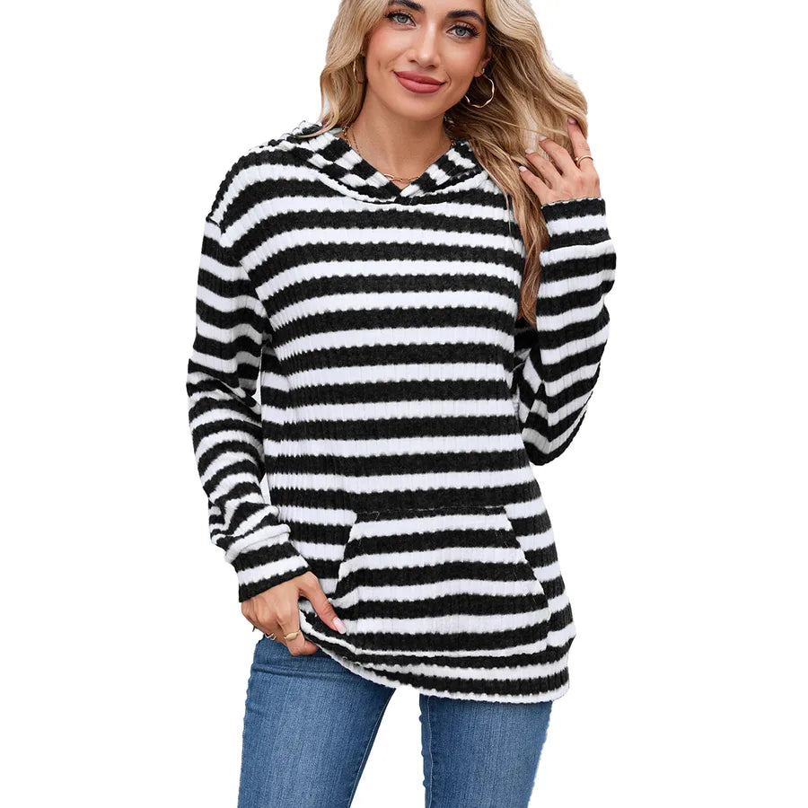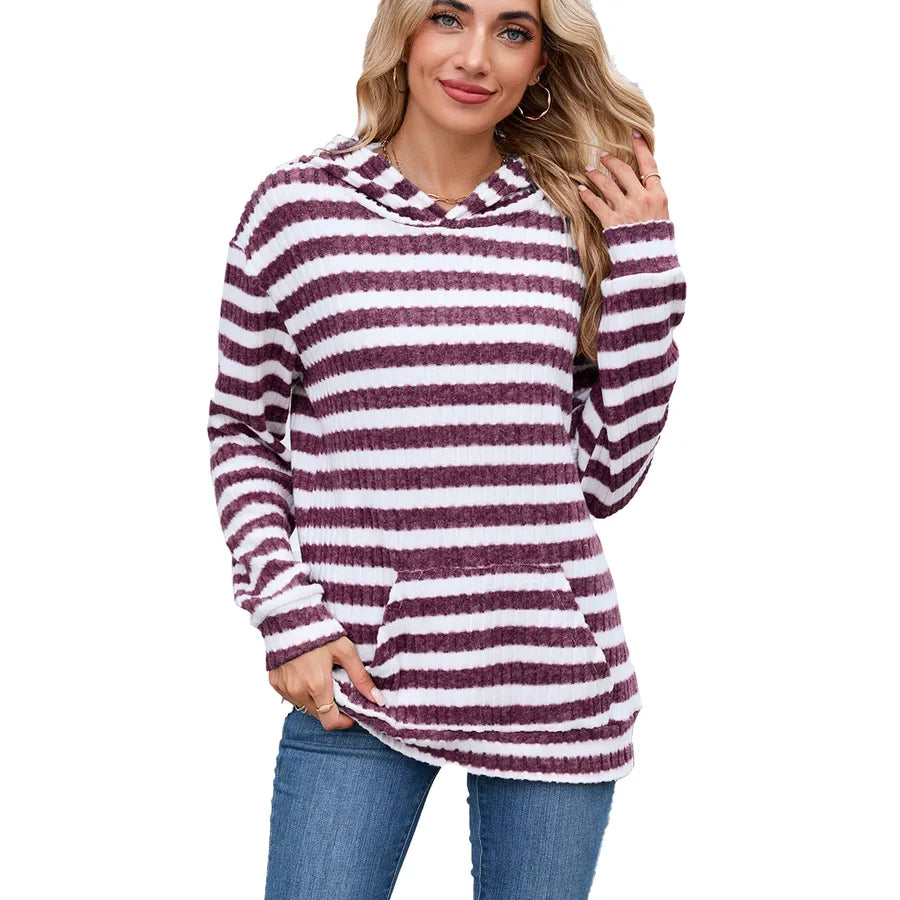 Women's Loose Fit Long Sleeve Hoodie Striped Pattern Autumn Winter New Style Fashionable Commute Urban Style With Pocket
