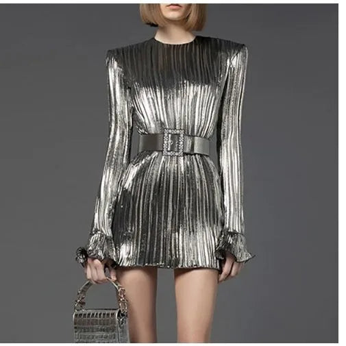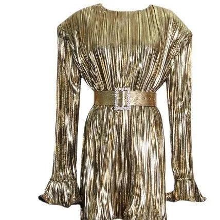 women's party dress elegant round neck pleated long sleeve solid color maxi long dress banquet street cocktail party