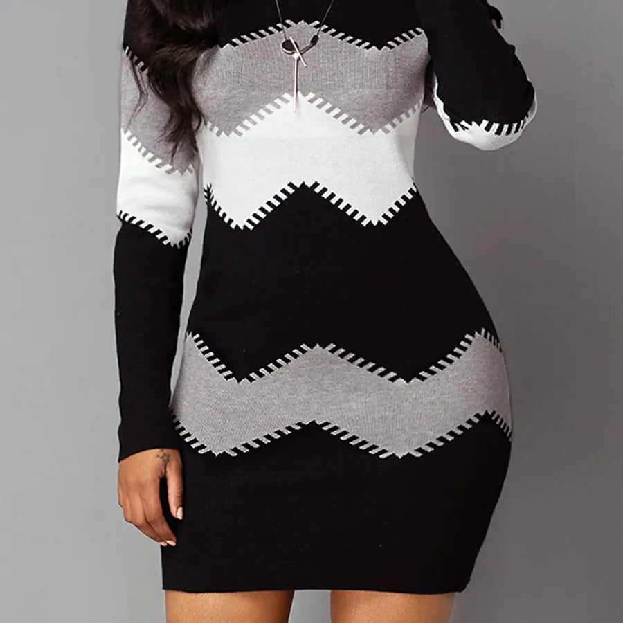 women's pencil skirt elegant round neck printing patchwork long sleeve stripe above knee daily