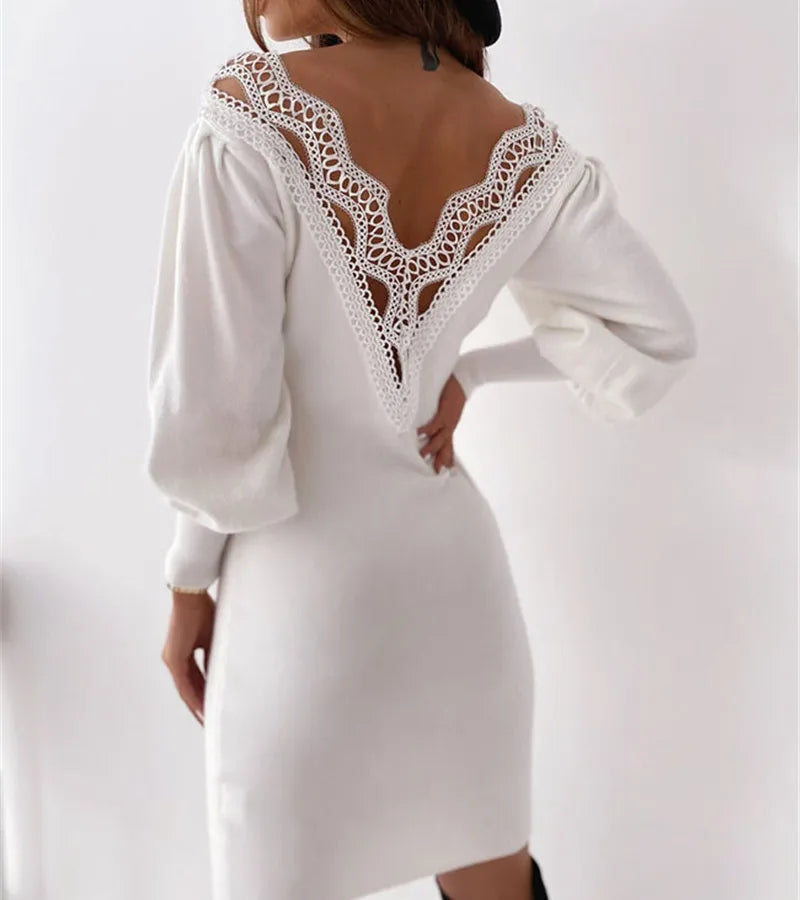 women's pencil skirt streetwear v neck patchwork lace long sleeve solid color above knee daily