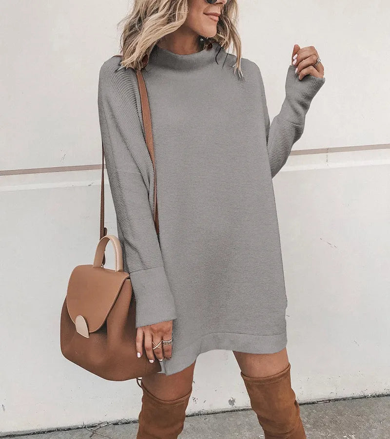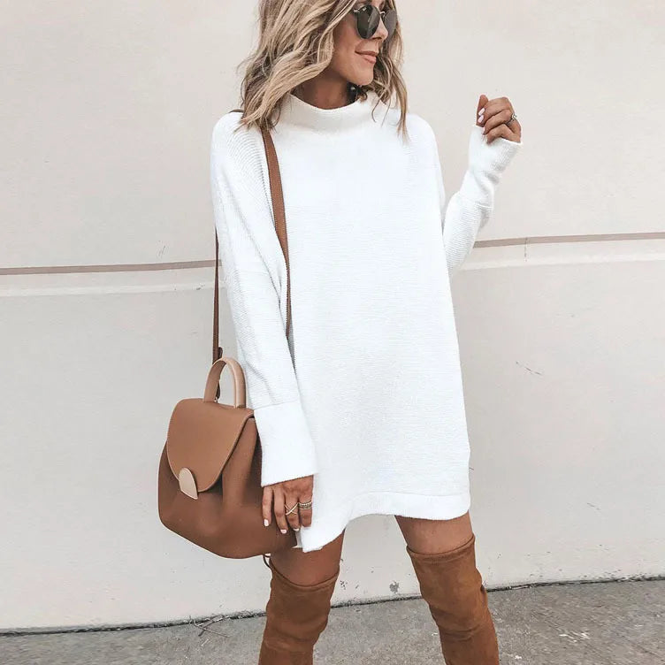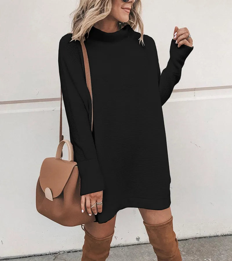 women's regular dress fashion turtleneck patchwork knitted long sleeve solid color above knee daily