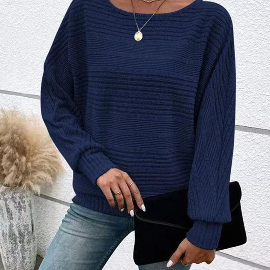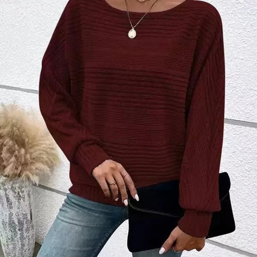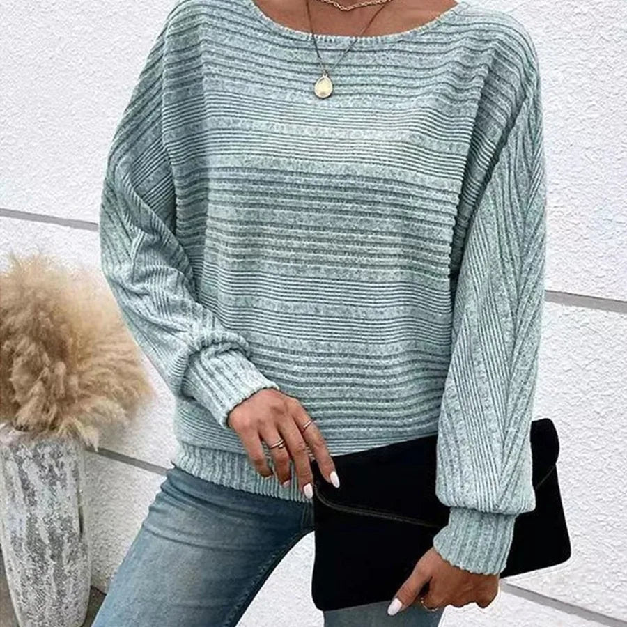 Women's Round Neck Batwing Sleeve T-shirt Autumn Winter New Style Striped Casual Loose Fit Fashion