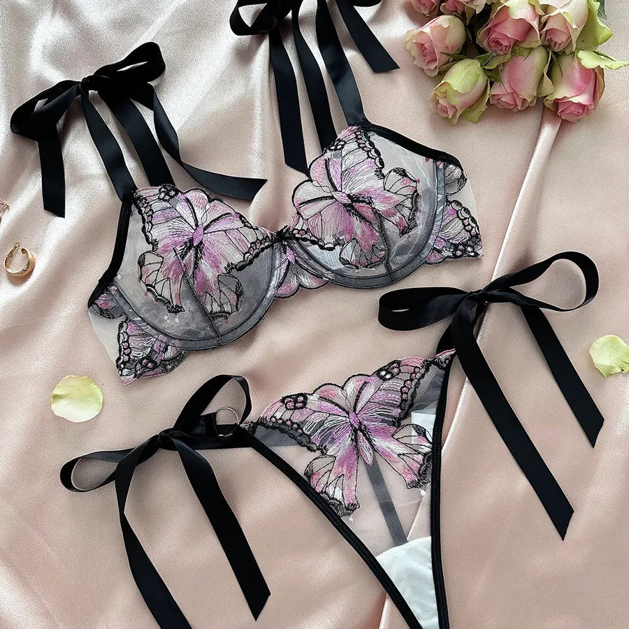 Women's Sexy Butterfly Sexy Lingerie Sets Home Honeymoon Sheer Bra Low Waist Bandage See-Through Sexy Lingerie