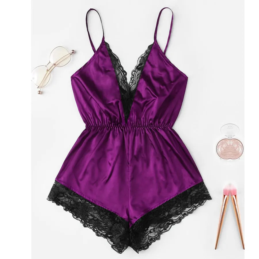 Women's Sexy Color Block Lace Home Sleeping Lace Bras Mid Waist Sexy Lingerie