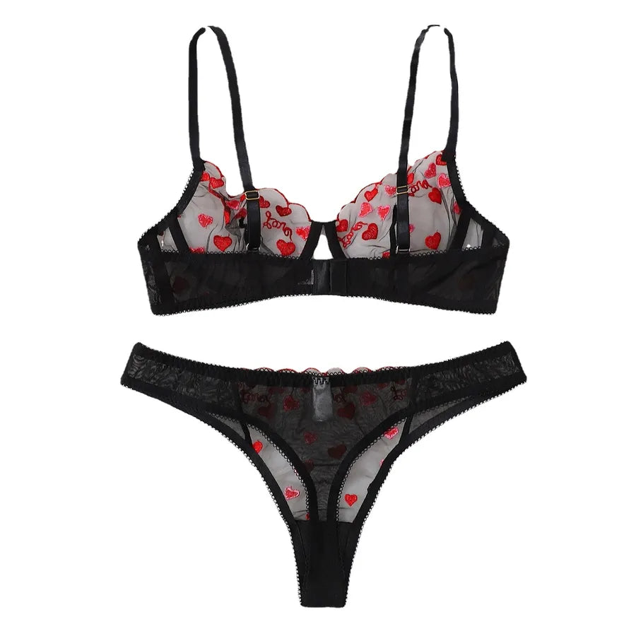 women's sexy letter heart shape sexy lingerie sets party embroidery see-through sheer bra low waist thong sexy lingerie
