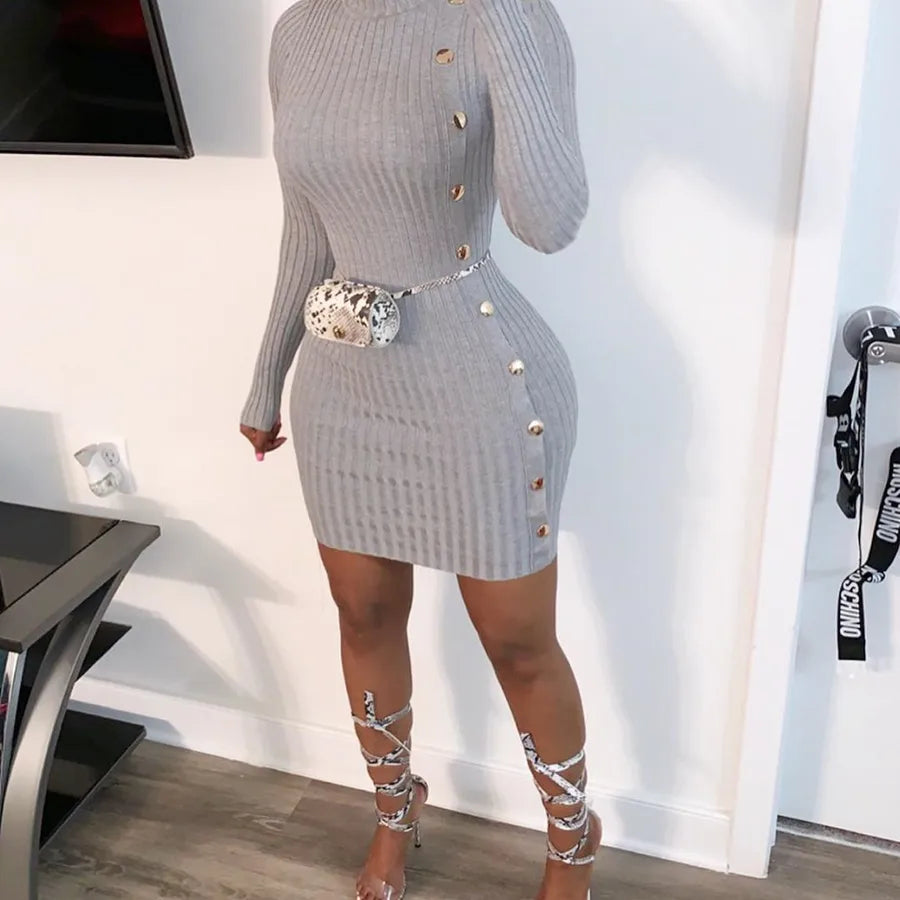 women's sheath dress casual elegant turtleneck long sleeve solid color above knee daily street