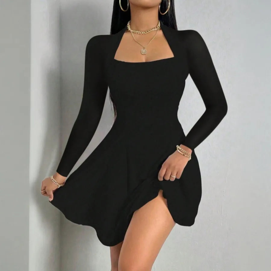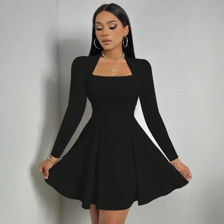 Women's Sheath Dress Elegant U Neck Sheath Dress Long Sleeve Solid Color Above Knee Holiday