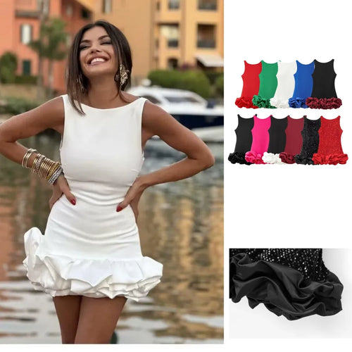 Women's Sheath Dress Streetwear Round Neck Zipper Sleeveless Solid Color Above Knee Holiday