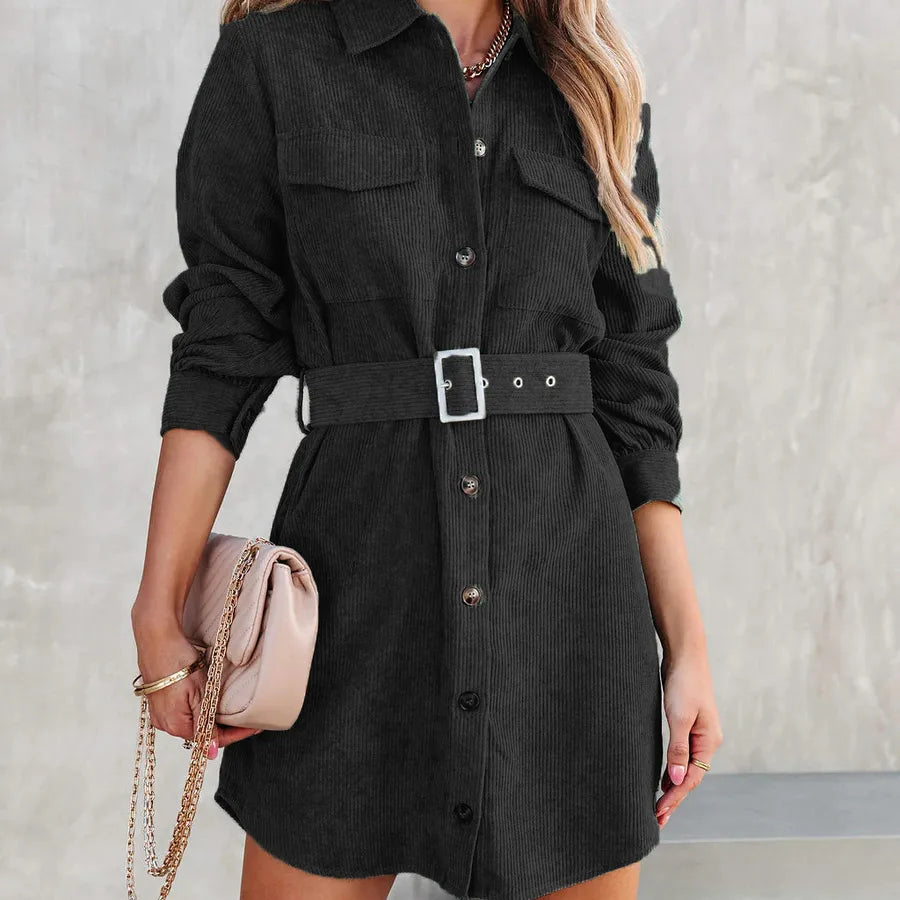women's shirt dress fashion streetwear turndown long sleeve solid color above knee street