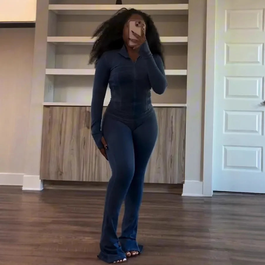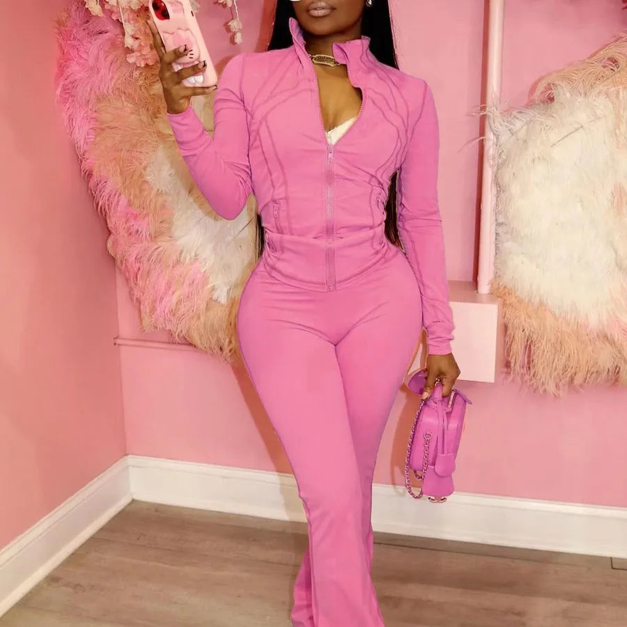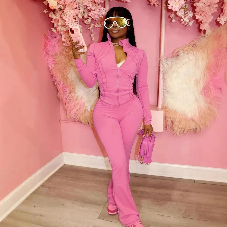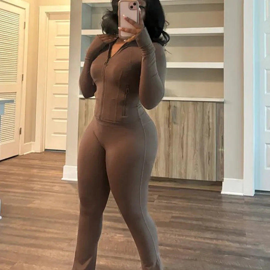 Women's Sporty Casual Slim Fit Long Sleeve Bell Bottom Two Piece Set Elegant Fashion Spring Summer New Arrival