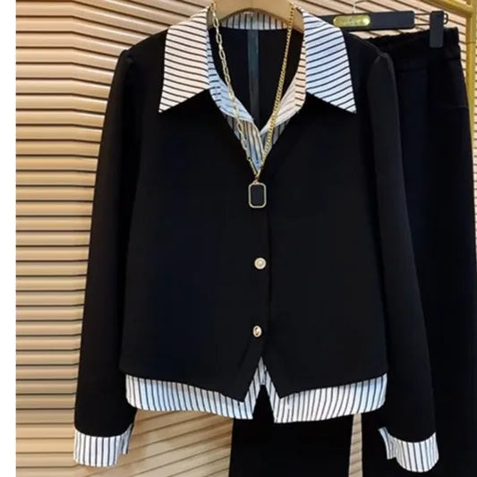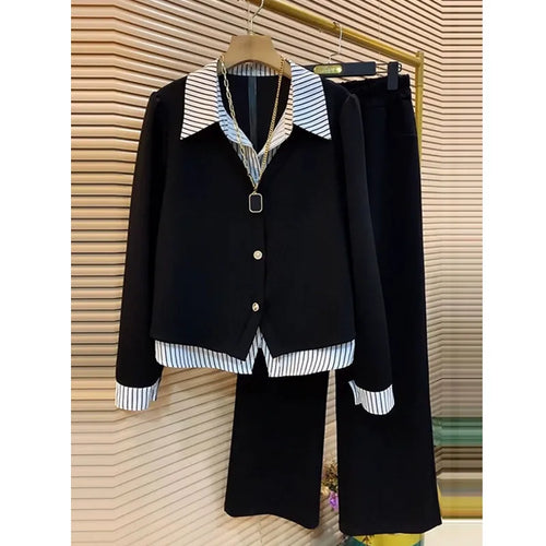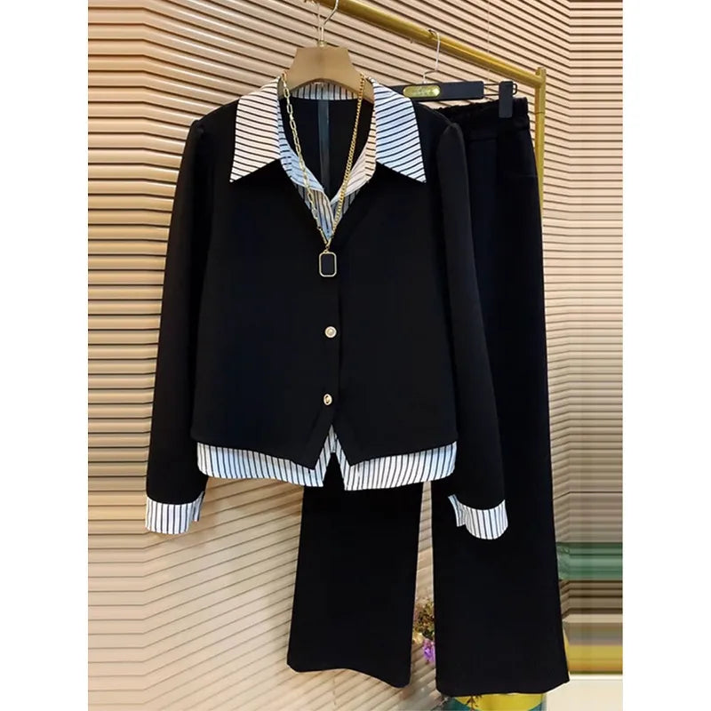 Women's Spring Autumn Plaid Shirt Collar Single Button Casual Fashion Slimming Two Piece Set Long Sleeve Wide Leg Pants