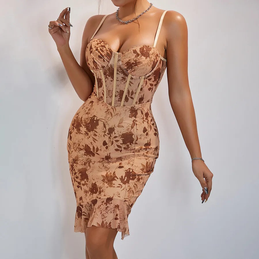 Women's Strap Dress Elegant Strap Sleeveless Leaves Above Knee Holiday