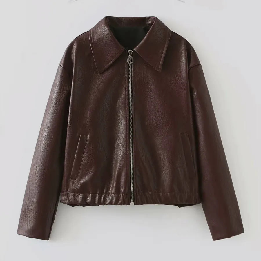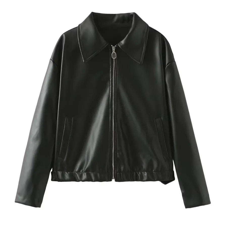 Women's Streetwear Solid Color Zipper Leather Jacket Casual Jacket