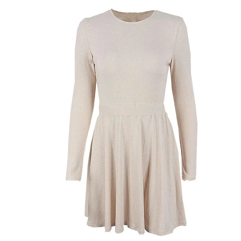 Y2K Long-sleeved Dress With Hollow Design Fashion Solid Color Round Neck A-line Dresses Fall Wainter Women's Clothing